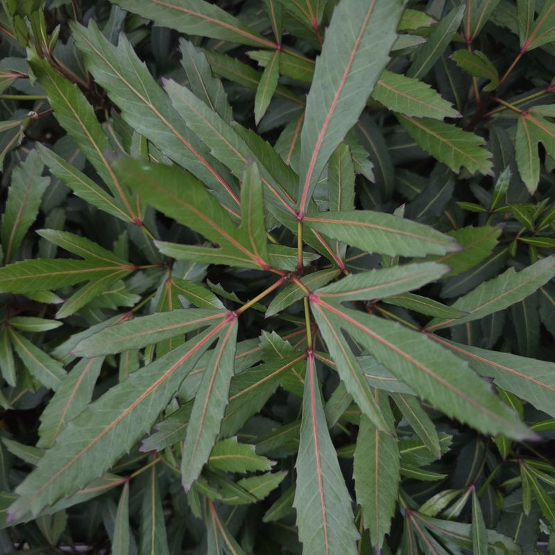 FEUILLES VERTES VIOLET NOIR, brillantes et coriaces profond avec des nervures rouge-orange vibrantes et sont constituées de 3 lobes. Sol fertile et bien drainé. Massif, pot