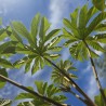 Arbuste ou petit arbre taiwanais dallure exotique. Grandes feuilles palmées caduques. Port en parasol. Pousse rapide drageonnante. Grappes en bouquets pendants de petites fleurs blanches en pompons. Sol drainé, humifère.